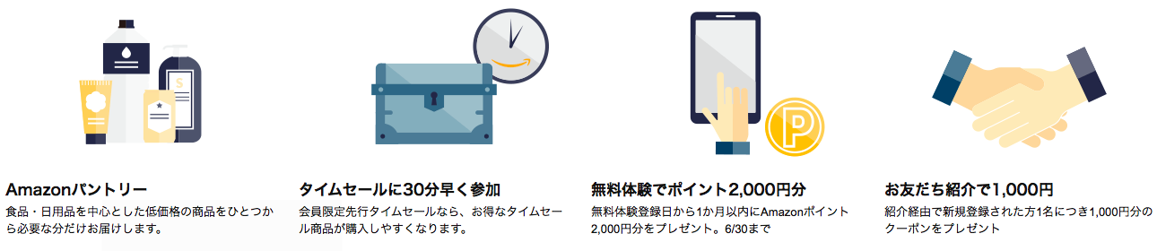 基本的に、一般向けの会員プログラムAmazonプライムと似たようなサービス内容ではあるのですが、その特典内容の優遇っぷりがハンパない内容になっています。