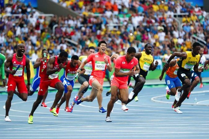 山県が抜群のスタートを決め、飯塚が着実につなぎ、桐生がカーブで加速に乗り、ケンブリッジはボルトと最後まで競り合った!